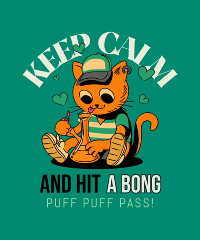 420-Themed T-Shirt Design Creator Featuring a Cartoonish Cat with a Bong