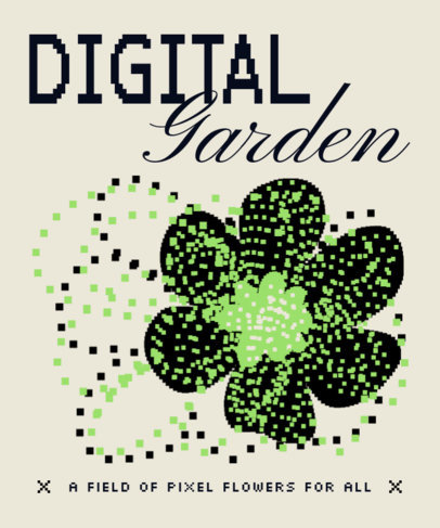 T-Shirt Design Template With a Pixel Art Aesthetic and a Flower Quote