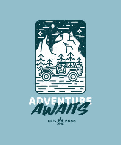 T-Shirt Design Template for Hiking Enthusiasts with an Illustration of a Landscape and a Car