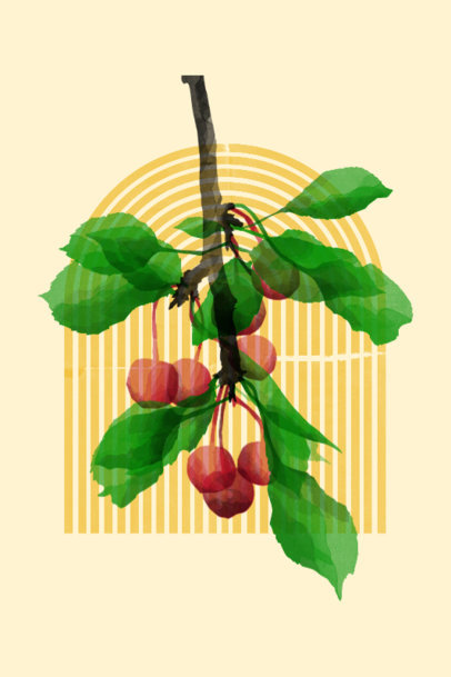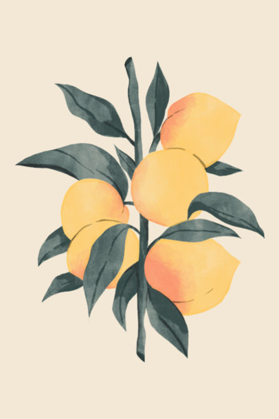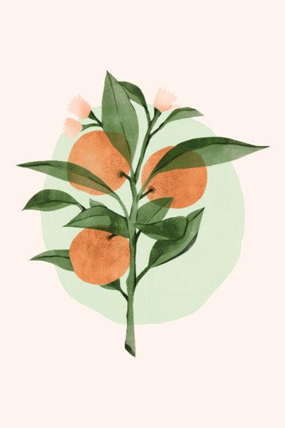 Watercolor-Styled Art Print Design Template Featuring a Peach Tree Branch Clipart