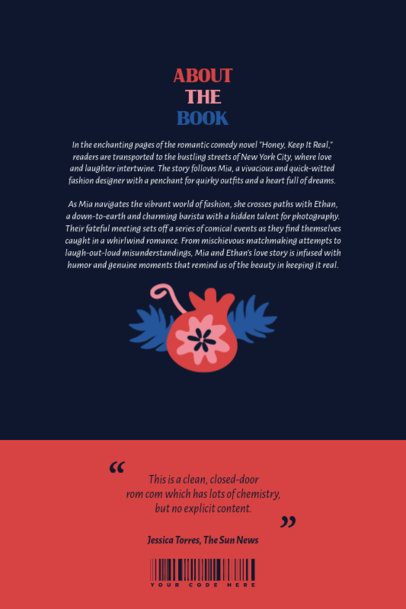 Back Book Cover Template for a Synopsis Section with a Colorful Flower