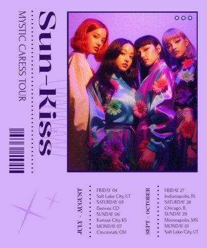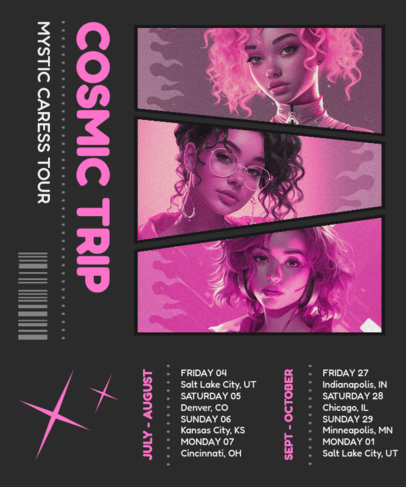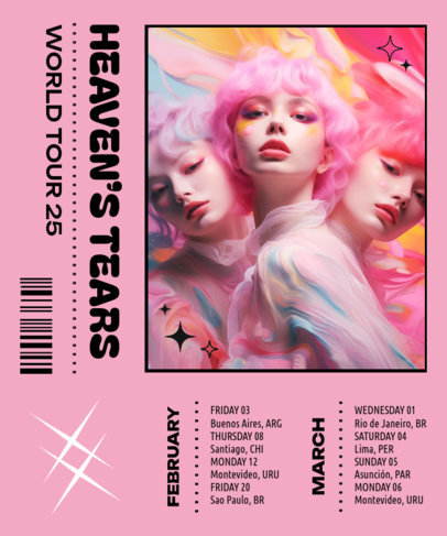 Back T-Shirt Design Template Featuring a Merch Theme for a Girl Band World Tour