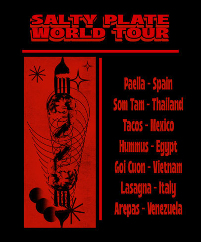 Back T-Shirt Design Template with an International Traditional Dishes List