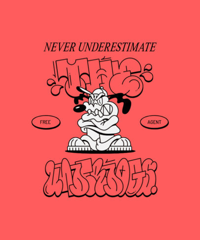 Back T-Shirt Design Maker Featuring a Cartoonish Character and Graffiti-Style Typefaces