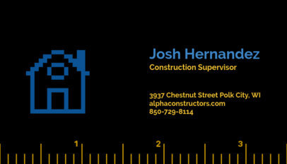 Business Card Maker for Construction Services Featuring Ruler Lines and a House Graphic
