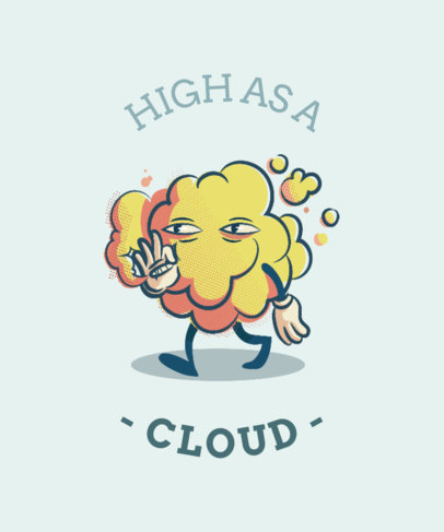 T-Shirt Design Template Featuring a Weed Smoke Cloud Character Cartoon