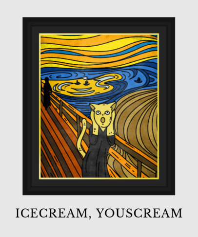 Make an artsy and fun t-shirt design in minutes using this t-shirt design template featuring cartoons of dogs and cats in famous paintings! To customize it, simply type your own text, select a graphic, a frame, and a background color. Celebrate art with these Van Gogh, Picasso, Da Vinci, Botticelli, Vermeer, Kahlo, Wood, and Mondrian inspired designs. Don't forget to try our Cat T-Shirt Design Maker!