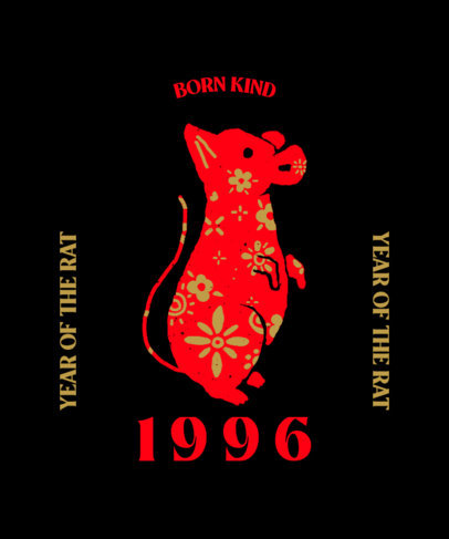 T-Shirt Design Template Featuring a Chinese Zodiac Theme and a Rat Graphic