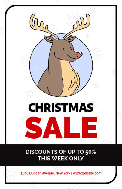 Christmas Flyer Maker with Cute Reindeer Cartoon Graphics for a Holiday Sale