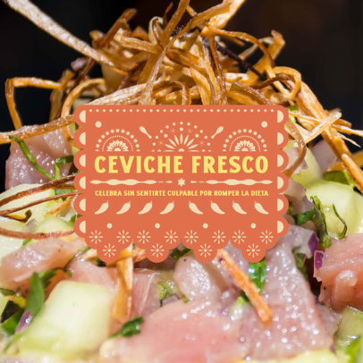 Instagram Post Template Featuring Mexican Party Banners and Food Pictures