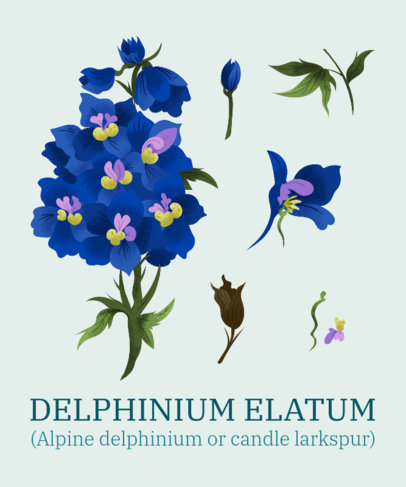 Botanical T-Shirt Design Maker with Candle Larkspur Flowers