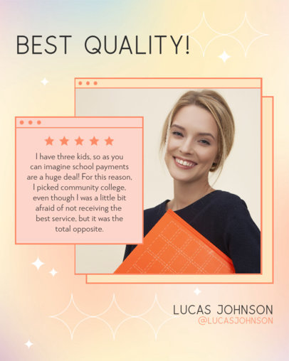 Instagram Post Generator for Sharing a Positive Customer Review of a Community College