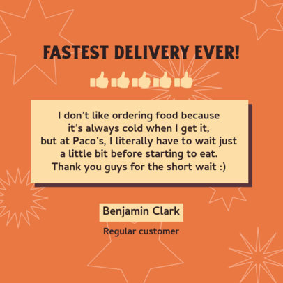Instagram Post Design Creator for Sharing a Customer Review of a Food Delivery Service