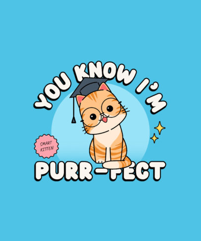Illustrated T-Shirt Design Template Featuring a Graduated Cat Graphic