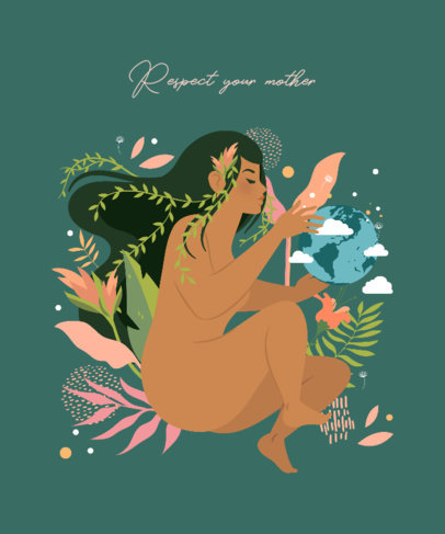 T-Shirt Design Template Featuring Mother Nature Taking Care of Our Earth