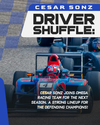 Instagram Post Template for Sportscasters Featuring a Car Racing Update
