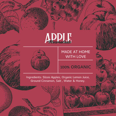 Front Label Template for an Organic Apple Marmalade with Background Illustrations