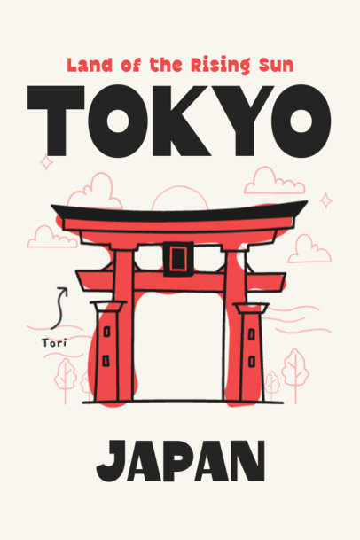 Front Postcard Template with a Tokyo's Meiji Shrine Illustration