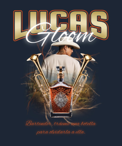 T-Shirt Design Generator Featuring a Liquor Bottle Graphic and a Norteno Singer