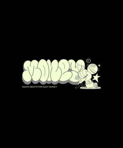 Front T-Shirt Design Template with a Graffiti-Style Font and an Illustrated Character