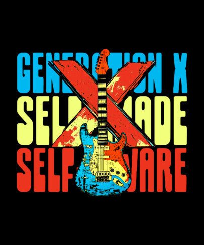 T-Shirt Design Template Featuring a Colorful Guitar for the Generation X