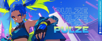 Create a standout Twitch profile with our Gaming Twitch Profile Banner Maker, featuring an eye-catching anime character for your favorite shooting game. Choose from our selection of Twitch templates and bundles, perfect for gamers who love illustration and Valorant.