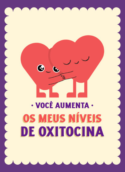 Valentine's Day-Inspired Greeting Card Template Featuring Two Illustrated Hearts Hugging
