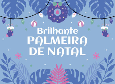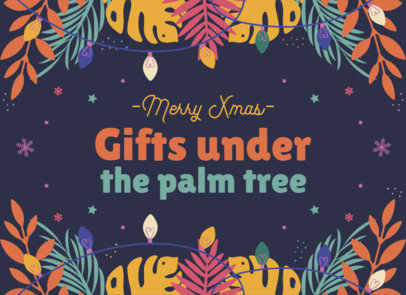 Greeting Card Template for a Tropical Xmas with Palm Leaf Graphics