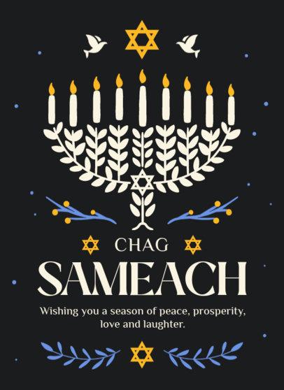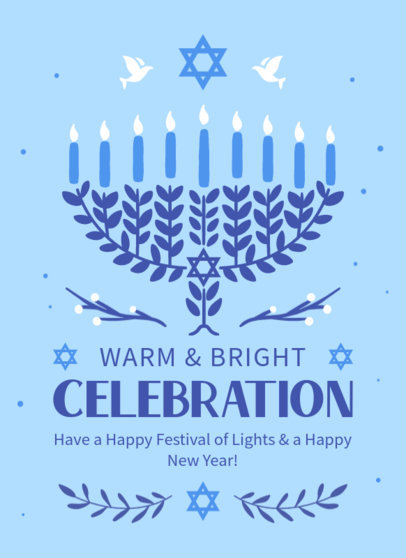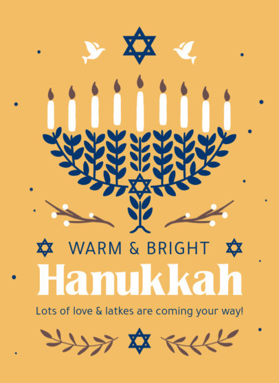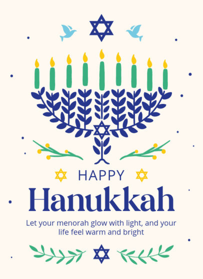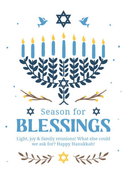 Greeting Card Template with an Illustrated Menorah for Hanukkah
