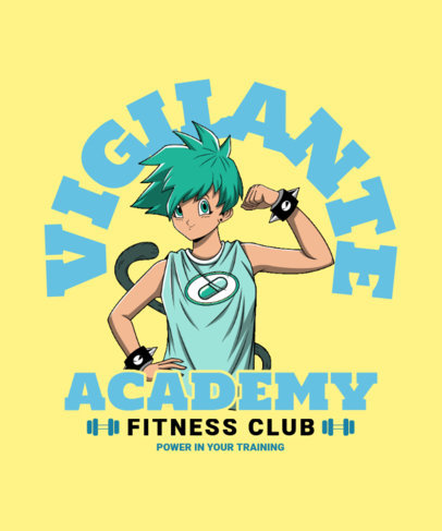 Gym T-Shirt Design Creator with an Illustrated Anime Character Lifting Dumbbells