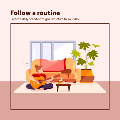 Illustrated Instagram Post Maker Featuring a Woman Playing Guitar at Home