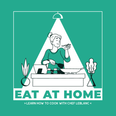 Illustrated Instagram Post Creator with a Woman Cooking at Home