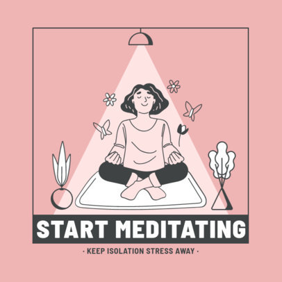 Instagram Post Creator Featuring an Illustration of a Woman Doing Yoga at Home