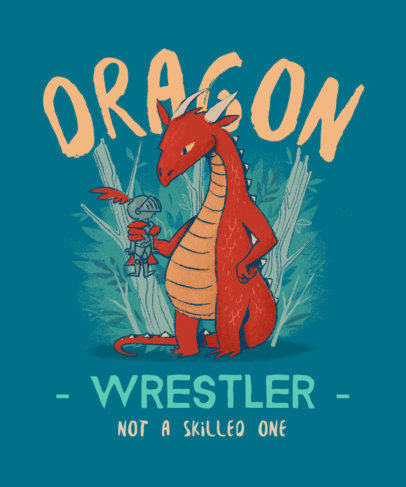 T-Shirt Design Template Featuring an Illustration of a Friendly Medieval Dragon