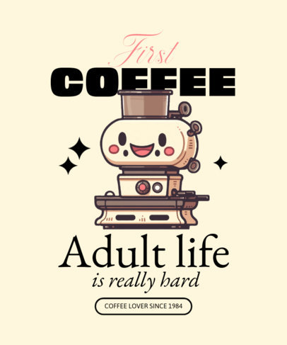 T-Shirt Design Template Featuring a Happy Coffee Maker Illustration
