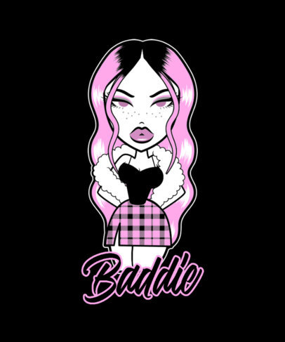 T-Shirt Design Maker Featuring a Female Cartoon Character Inspired by Bratz
