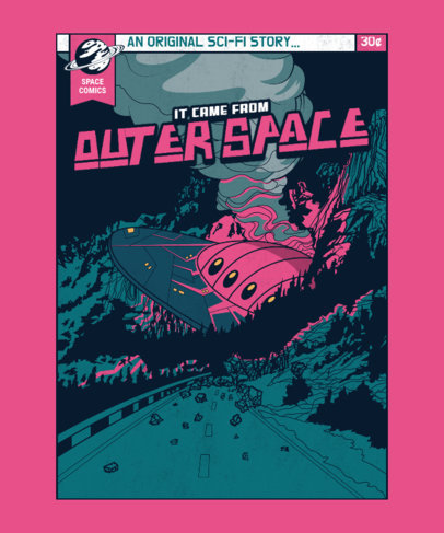 Sci-Fi T-Shirt Design Template Featuring a Crashed UFO