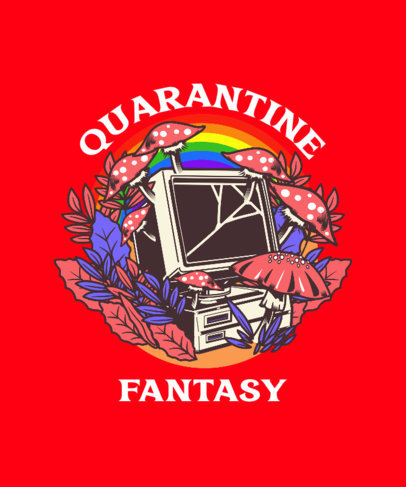 T-Shirt Design Template with a Surreal Illustration of a Computer Covered in Mushrooms
