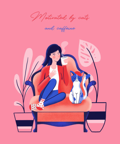 Illustrated T-Shirt Design Template with a Funny Cat Quote