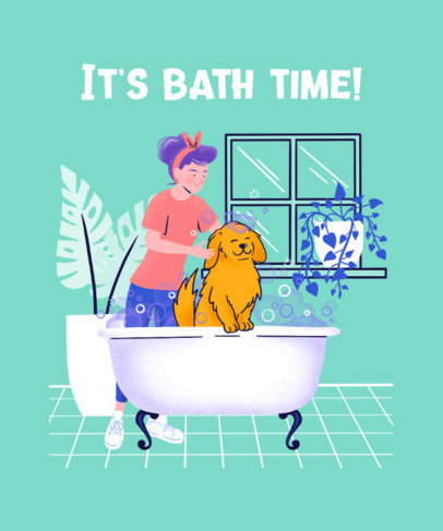 Illustrated T-Shirt Design Generator Featuring a Woman Bathing Her Dog