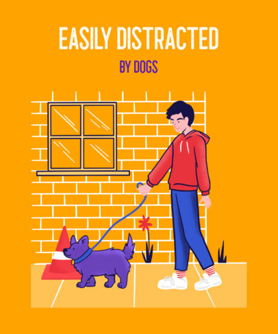 Pet T-Shirt Design Template Featuring an Illustration of a Man Walking His Dog