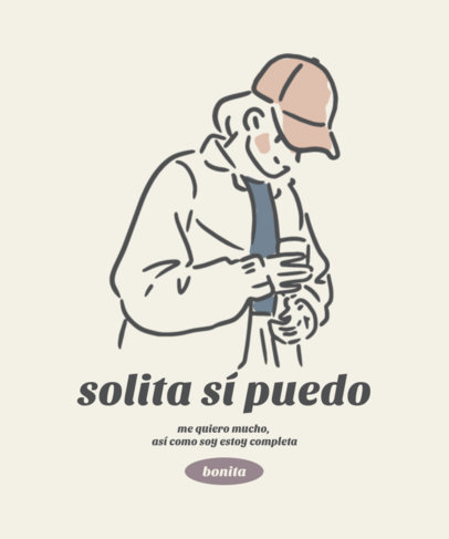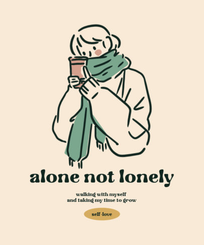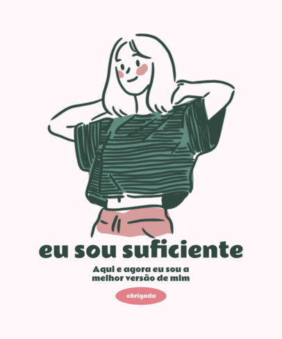 T-Shirt Design Template Featuring a Self-Love Message and an Illustration of a Young Woman