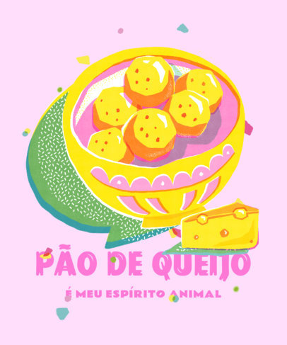 Illustrated T-Shirt Design Template Featuring Brazilian Cheese Bread