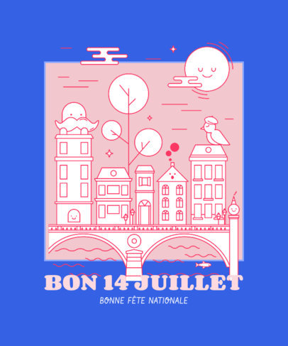 Bastille Day T-Shirt Design Template Featuring Happy French Building Illustrations