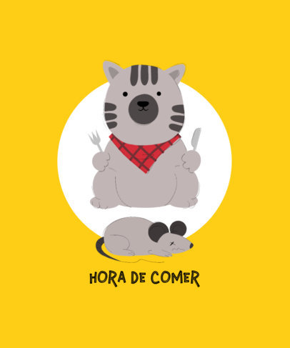 Illustrated T-Shirt Design Generator Featuring a Cat Ready to Eat