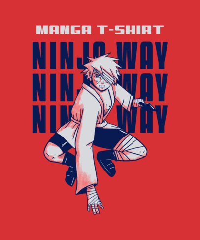 T-Shirt Design Template with a Martial Artist Graphic in Anime Style