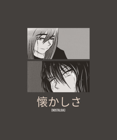 T-Shirt Design Template Featuring Manga Characters and Japanese Text