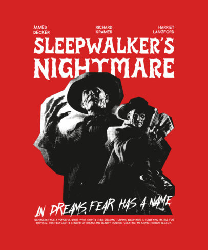 Horror T-Shirt Design Template Featuring a Macabre Nightmare Character