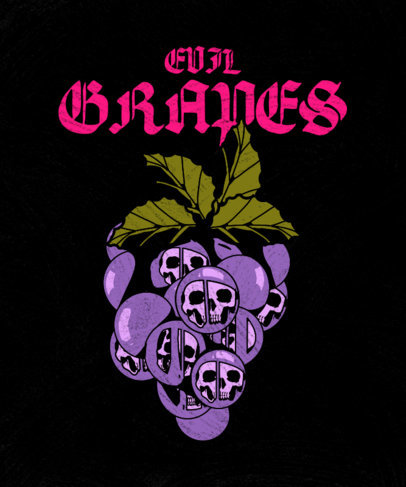 Illustrated T-Shirt Design Template for a Heavy Rock Band Featuring Poisonous Grapes