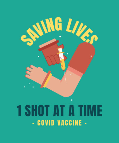 COVID-19-Themed T-Shirt Design Template Featuring an Illustration of a Vaccine Shot